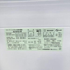 今回は狛江市にお住まいの30代女性(会社員・単身・賃貸アパート)より、SHARP ノンフロン冷凍冷蔵庫 SJ-D15J-W(2023年製)を出張買取にてご依頼いただきました。