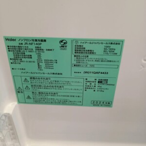 東京都東久留米市にてHaier JR-NF140P 冷蔵庫 2024年製 美品のため高価買取いたしました
