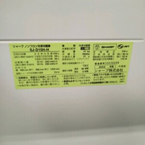 東京都八王子市にてSHARP SJ-D15H-H 冷蔵庫 2022年製 使用感ありのため適正価格で買取いたしました