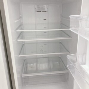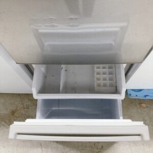 お引き取りした冷蔵庫は外装に細かな擦り傷や使用に伴う汚れが見受けられる状態でした。庫内も通常使用による汚れが一部確認できましたが、棚板や野菜ケース、冷凍引き出しなどの主要パーツは揃っており、破損などはありませんでした。冷却動作も問題なく、冷蔵・冷凍ともにしっかりと機能していることを確認しています。使用感はあるものの再販可能な状態と判断いたしました。