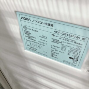 東京都あきる野市にてAQUA AQF-GS13M(W)冷凍庫 2023年製 やや使用感ありのため適正価格で買取いたしました