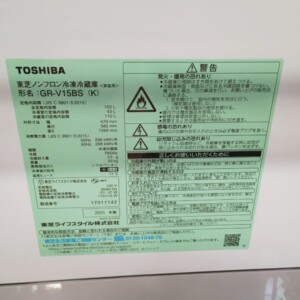 東京都東大和市へ出張買取 東芝 冷蔵庫 GR-V15BS(2023年製) 使用感少なめのため高価査定しました