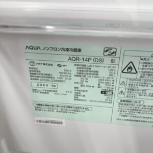 今回は東京都港区麻布十番にお住まいの40代男性(自営業・単身・持ち家マンション)より、AQUA ノンフロン冷凍冷蔵庫 AQR-14P(DS)(2024年製)を出張買取にてご依頼いただきました。