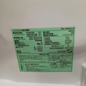 東京都福生市にてオーヤマ PRC-B092D-W 冷蔵庫 2024年製 美品のため高価買取いたしました