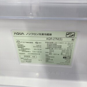 東京都港区表参道にてAQUA AQR-27M(S) 冷蔵庫 2022年製 美品のため高価買取しました