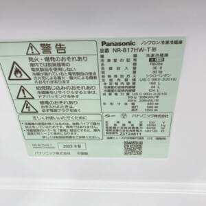 今回は東京都世田谷区二子玉川にお住まいの30代男性よりパナソニックノンフロン冷凍冷蔵庫 NR-B17HW-T(2023年製)を出張買取にてご依頼いただきました。