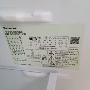 今回は千代田区有楽町にお住まいの30代女性(会社員・単身・賃貸マンション)より、Panasonic ノンフロン冷凍冷蔵庫 NR-B18C1-K(2024年製)を出張買取にてご依頼いただきました。