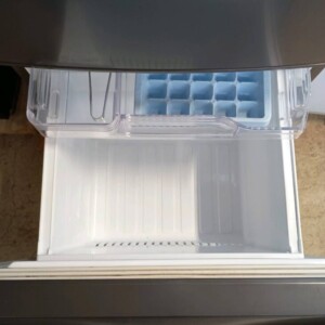 現地で確認したところ、外装には目立つキズやへこみは少なく、全体的にきれいな状態でした。庫内も清掃が行き届いており、棚板・ケース類の欠品や割れもありません。冷却動作も問題なく、異音や温度不良も見られず、中古品としては良好なコンディションでした。製氷トレーなどの付属品も揃っており、すぐに再販可能な状態でした。