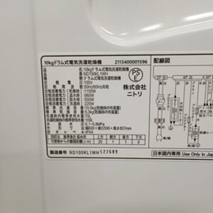 今回は江東区にお住まいの40代夫婦(会社員・夫婦世帯・賃貸マンション)より、ニトリ ND100KL1WH ドラム式洗濯乾燥機(10kgタイプ)を出張買取にてご依頼いただきました。