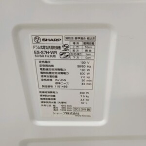 今回は渋谷区にお住まいの30代女性(会社員・単身・賃貸マンション)より、SHARP ES-S7H-WR(2023年製)ドラム式洗濯乾燥機を出張買取にてご依頼いただきました。