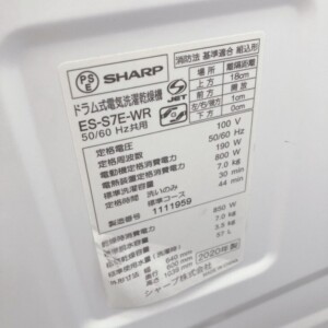 SHARPのES-S7Eシリーズは、コンパクト設計で設置しやすいドラム式洗濯乾燥機として一定の需要があります。2020年製のため最新モデルと比べると年式面での減額はあるものの、動作良好で再販可能な状態が評価ポイントとなりました。