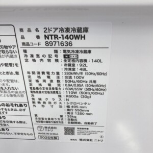 ニトリのNTR-140WHは、140Lクラスで単身世帯に人気の高いモデルであり、中古市場でも一定の需要があります。特に2025年製と非常に新しく、状態も良好である点が大きな評価ポイントとなりました。