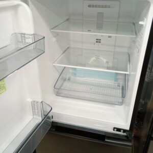 お預かりした冷蔵庫は、外観に目立つキズやへこみが少ないきれいな状態でした。庫内も清掃が行き届いており、棚板やドアポケットも揃っている状態でした。動作確認でも冷却・冷凍ともに問題なく、コンディションの良い中古品として評価できるお品物でした。