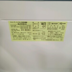 今回は目黒区にお住まいの30代女性(主婦・単身世帯・賃貸マンション)より、SHARP SJ-D15H-H(2021年製)2ドア冷蔵庫を出張買取にてご依頼いただきました。