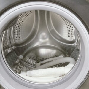 本体は外装に目立つキズやへこみが少なく、全体的に良好な状態でした。前面ドア部分に軽微な使用感は見受けられましたが、操作パネルの表示やボタンの反応に問題はありません。ドラム内部もサビや大きな汚れはなく清潔感のある状態で、付属の排水ホースも確認できました。洗浄・脱水・乾燥の各動作も正常で、家庭用として十分に再販可能なコンディションと判断しました。