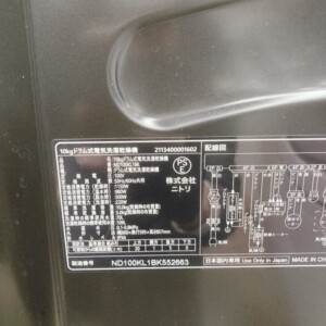 今回は小平市にお住まいの50代女性(主婦・親子世帯・持ち家(一戸建て))より、ニトリ ドラム式洗濯乾燥機 ND100KL1BK(10kgモデル)を出張買取にてご依頼いただきました。