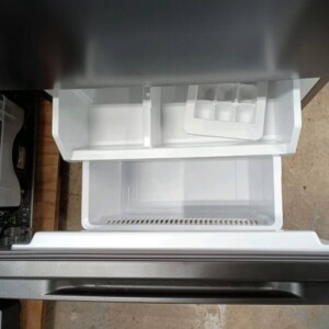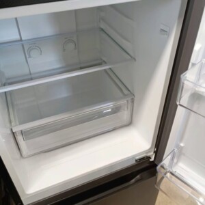 拝見させていただいたAQUAの冷蔵庫は、外装・庫内ともに非常にきれいな状態でした。使用期間も短く、目立つキズやへこみは見受けられず、庫内の棚やケース類もすべて揃っており清潔に保たれていました。