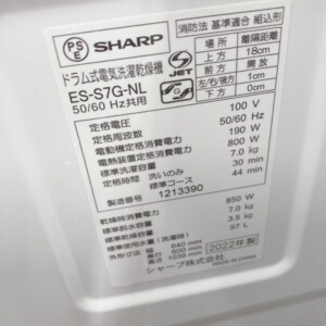 東京都武蔵野市でSHARP ES-S7G-NL(2022年製)ドラム式洗濯乾燥機を美品のため適正価格で買取しました