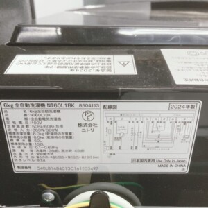 東京都清瀬市でニトリ NT60L1BK(2024年製)全自動洗濯機を美品のため適正価格で買取しました