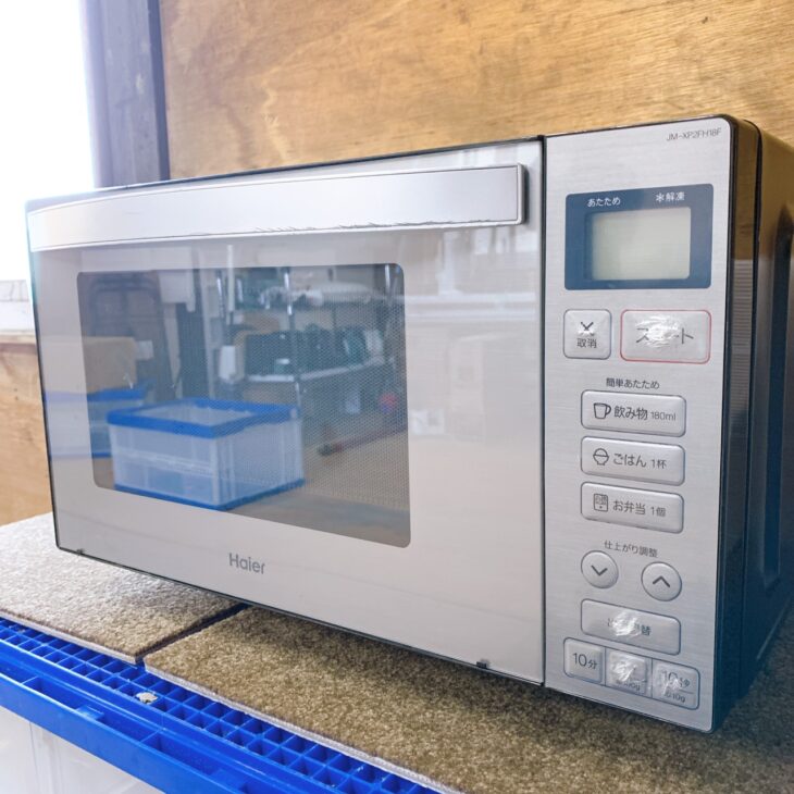 Haierの電子レンジはシンプル設計で中古市場でも一定の需要があります。特に本モデルはコンパクトで一人暮らし向け需要があり、再販しやすい点が評価ポイントとなりました。