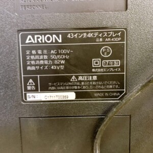 今回は新宿区神楽坂にお住まいの30代女性・会社員の方より、ARION 43インチ4Kディスプレイ AR-43DP(2017年製)を出張買取にてご依頼いただきました。