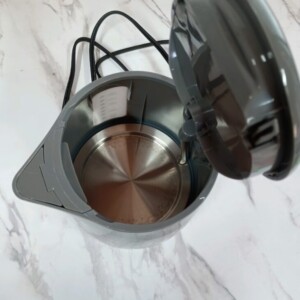 お預かりした電気ケトルは、外観に目立つキズや汚れがほとんど見られない非常にきれいな状態でした。ボディの光沢も保たれており、使用回数が少ないことがうかがえました。内部も水垢の付着がわずかに確認できる程度で、清潔感のあるコンディションでした。加熱動作や通電も問題なく、日常使用において支障のない状態でした。