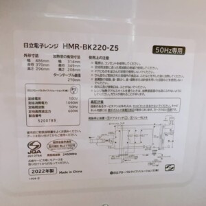今回は大田区にお住まいの50代男性・会社員の方より、日立 電子レンジ HMR-BK220-Z5(2022年製)を出張買取にてご依頼いただきました。