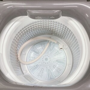 査定したJW-U55LKは、外装に目立つへこみや大きな傷はなく比較的良好な状態でした。天面の操作パネル部分にも大きなダメージはなく、日常使用に伴う軽微な擦れ程度が見られる程度です。槽内も清潔に保たれており、排水ホースなどの付属品も揃っていました。給水・洗い・脱水といった基本動作も問題なく確認でき、再販しやすいコンディションでした。