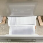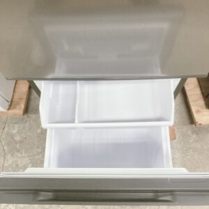 拝見した冷蔵庫は、外装に軽度の擦れや小さな汚れが見られる状態でしたが、大きなキズやへこみはなく全体的には良好でした。庫内は棚や引き出しも揃っており、比較的きれいな状態で、使用に伴うわずかなスレ程度に留まっていました。冷却動作も確認済みで、冷蔵・冷凍ともに正常に稼働していました。