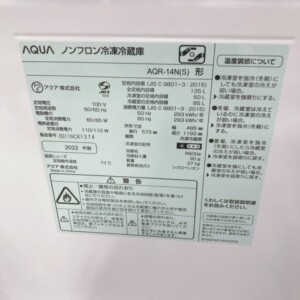 東京都練馬区でAQUA 冷蔵庫 AQR-14N(S) 2022年製 やや使用感ありのため適正価格で買取しました