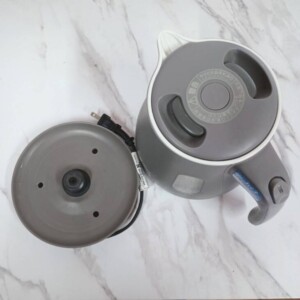 お預かりした電気ケトルは、外装に細かな擦れや軽微な汚れが見受けられる状態でした。内部のステンレス部分には使用に伴う水跡が確認できましたが、大きな変色やダメージはありませんでした。フタや台座も揃っており、通電・加熱動作ともに問題なく、日常使用に支障のない状態でした。