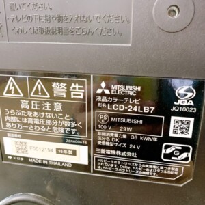 東京都府中市へ三菱 液晶テレビ LCD-24LB7 2015年製 使用感ありのため適正価格で買取しました