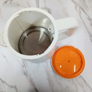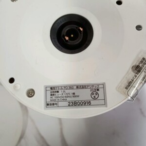 お預かりした電気ケトルは、外装に軽度の汚れやくすみが見受けられる状態でした。内部には使用に伴う水垢や若干の変色が確認できましたが、目立つダメージはありませんでした。フタや台座も揃っており、通電・加熱ともに問題なく、正常に動作する状態でした。全体として日常使用の範囲内での使用感でした。