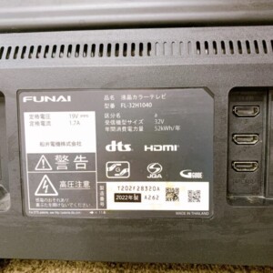 今回は千代田区にお住まいの30代男性より、FUNAI 液晶テレビ FL-32H1040(2022年製)を出張買取にてご依頼いただきました。