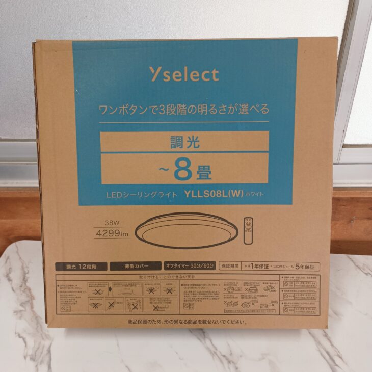 今回のYselect YLLS08L(W)は、8畳用のスタンダードなLEDシーリングライトで、調光機能やリモコン操作など基本性能が備わっているモデルです。