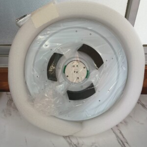 拝見したお品物は~8畳対応のLEDシーリングライトで、箱や本体の状態から未使用に近い非常に良好なコンディションでした。外箱には保管時の軽微な擦れはあるものの、本体は保護材に包まれたままで、傷や汚れは見受けられませんでした。