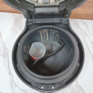 お引き取りした炊飯器は、外装に擦れや細かな傷、使用に伴う汚れが見られる状態でした。内釜には軽度の使用感があり、底面に薄い擦れ跡が確認できましたが、大きな剥がれや変形はなく、炊飯機能も正常に動作しました。付属品としてしゃもじと計量カップが揃っている点は評価できるポイントでした。