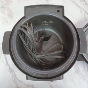 お引き取りした電気圧力鍋は、外装に軽度の擦れや使用に伴う汚れが見られる状態でした。内鍋部分には調理による使用感がありましたが、コーティングの剥がれや大きなダメージはなく、問題なくご使用いただける状態でした。また、電源コードも付属しており、動作確認の結果、加熱・圧力調理ともに正常に動作しました。