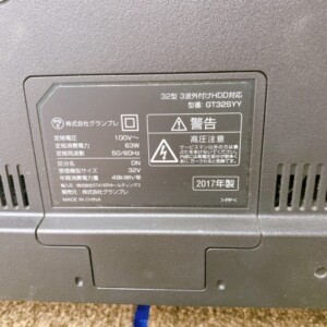 今回は港区南麻布にお住まいの30代女性より、グランプレ GT32SYY(2017年製)の32型液晶テレビを出張買取にてご依頼いただきました。