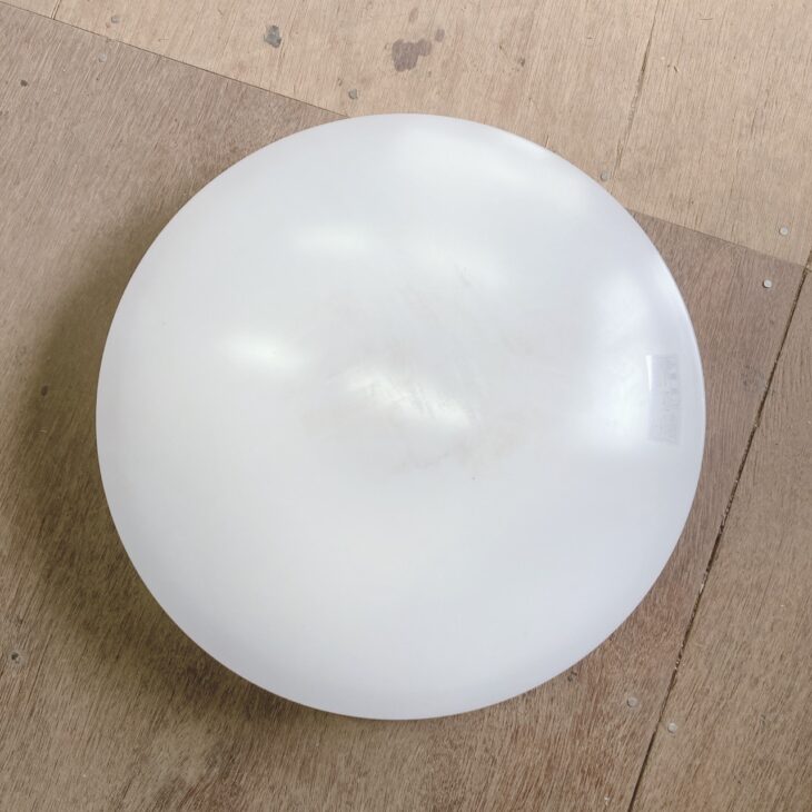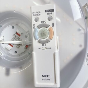 ご依頼いただいたシーリングライトは、カバー部分に細かな擦り傷や軽度の汚れが見られる状態でした。内部には若干のホコリの付着が確認できましたが、LEDの発光は均一で問題なく、リモコン操作による調光・調色機能も正常に動作しました。付属のリモコンも揃っており、日常使用に支障のない状態でした。