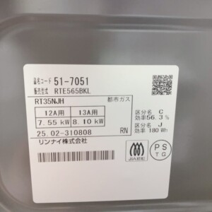 今回は調布市にお住まいの20代男性(会社員・単身・賃貸アパート)より、リンナイ製 ガステーブルコンロ RT35NJH(RTE565BKL)を出張買取にてご依頼いただきました。