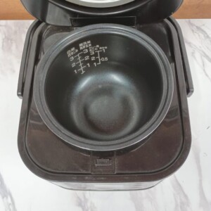 お預かりした炊飯器は、外装に細かな擦り傷や使用によるくすみが見受けられる状態でした。内釜についても軽微な使用感はありましたが、コーティングの大きな剥がれはなく、炊飯機能に影響のない状態でした。動作確認では炊飯・保温ともに問題なく作動し、日常使用に支障のないコンディションを確認しました。全体としては使用感はあるものの実用可能な状態でした。