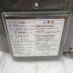 東京都日野市にてニトリ SN-A5BK 炊飯器 使用感ありでも動作品のため適正価格で買取しました