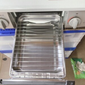 お預かりしたガスコンロは、天板に軽度の汚れや細かな擦り傷が見受けられる状態でした。五徳部分には使用による焼き跡や変色がありましたが、大きな歪みや破損はなく、実用には問題のない状態です。グリル内部は比較的きれいで、焼き網や受け皿も良好なコンディションを保っていました。点火や火力調整も問題なく、全体として正常に使用できる状態でした。