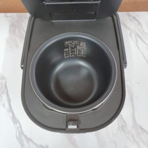 お預かりした炊飯器は、外装に細かな擦り傷や軽度の汚れが見られる状態でした。上部には使用に伴うくすみがあり、日常的に使用されていたことが分かるコンディションです。内釜についても軽微な使用感はありますが、コーティングの大きな剥がれや変形はなく、炊飯機能に影響のない状態でした。動作確認では炊飯・保温ともに問題なく、実用面で十分に使用可能な商品でした。