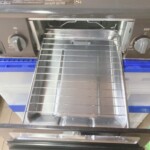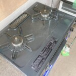 お預かりしたガステーブルは、天板部分に使用に伴う油汚れや焦げ跡が見受けられ、五徳周辺にも焼き付きが確認できる状態でした。ただし、グリル内部は比較的きれいで、網や受け皿の状態も良好でした。点火動作についても問題なく、左右バーナー・グリルともに正常に使用できることを確認しております。全体として使用感はあるものの、まだ十分に再利用可能な状態でした。