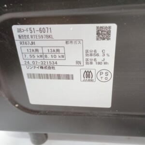 今回は中央区にお住まいの30代女性(主婦・夫婦世帯・持ち家マンション)より、リンナイ ガステーブル RTE597BKL(都市ガス用)を出張買取にてご依頼いただきました。