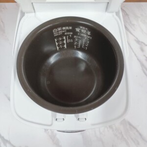 お預かりした炊飯器は、外装に細かな擦り傷や軽い汚れの付着が見られ、日常的に使用されていた形跡がある状態でした。フタ周辺やボタン部分にも若干の使用感が確認できましたが、大きな破損や割れはありません。内釜は全体的に使用感があり、底面に細かな擦れ跡や変色が見られるものの、コーティングの剥がれは軽微で、炊飯機能には問題のない状態でした。通電・炊飯動作ともに正常であることを確認しております。