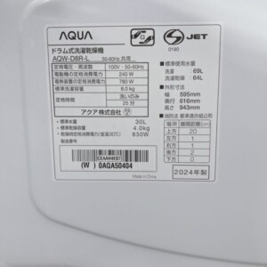 今回は港区新橋にお住まいの40代女性(主婦・夫婦世帯・持ち家マンション)より、AQUA ドラム式洗濯乾燥機 AQW-D8R-L(2024年製)を出張買取にてご依頼いただきました。