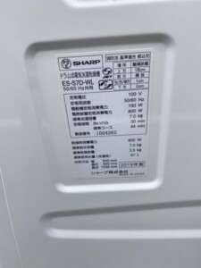 SHARP(シャープ)7.0㎏ ドラム式洗濯乾燥機 ES-S7D-WL 2019年製